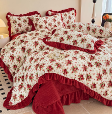 红豆床上四件套家用亲肤床单被套